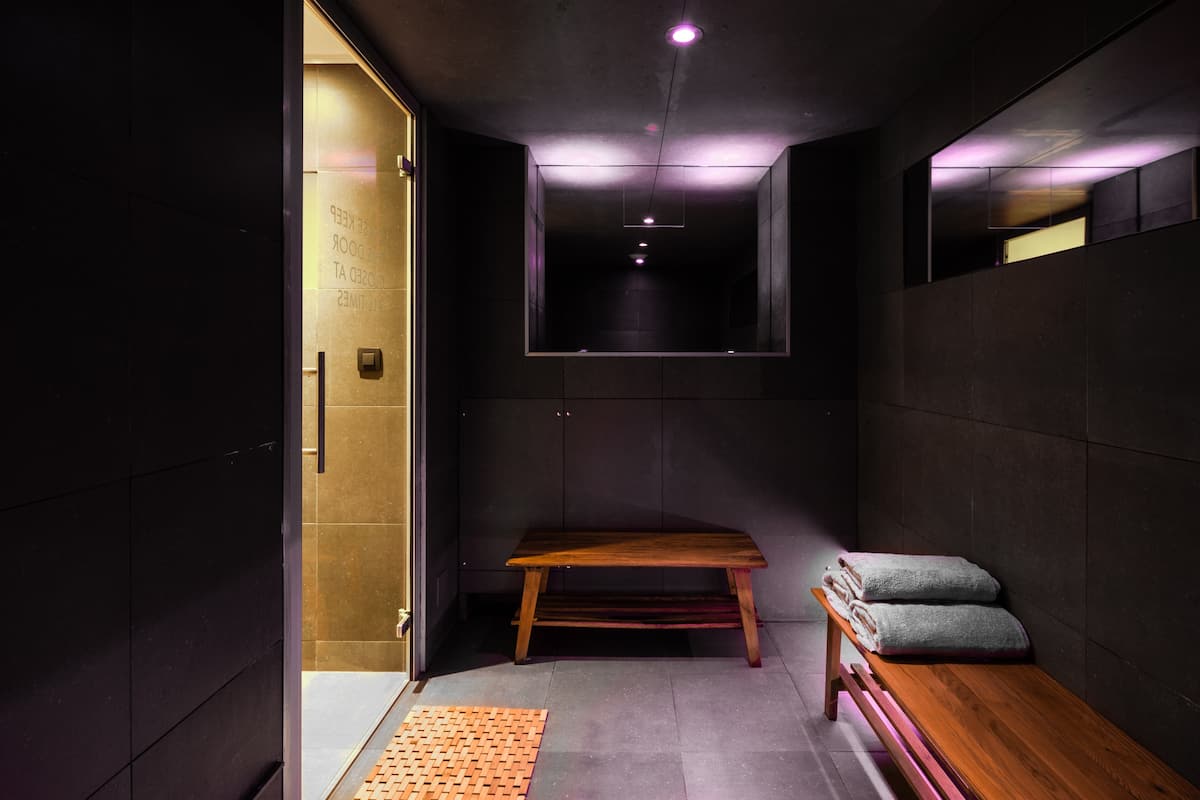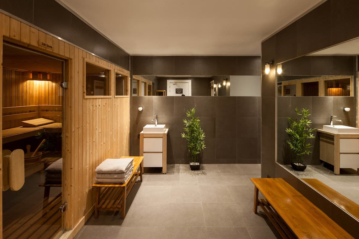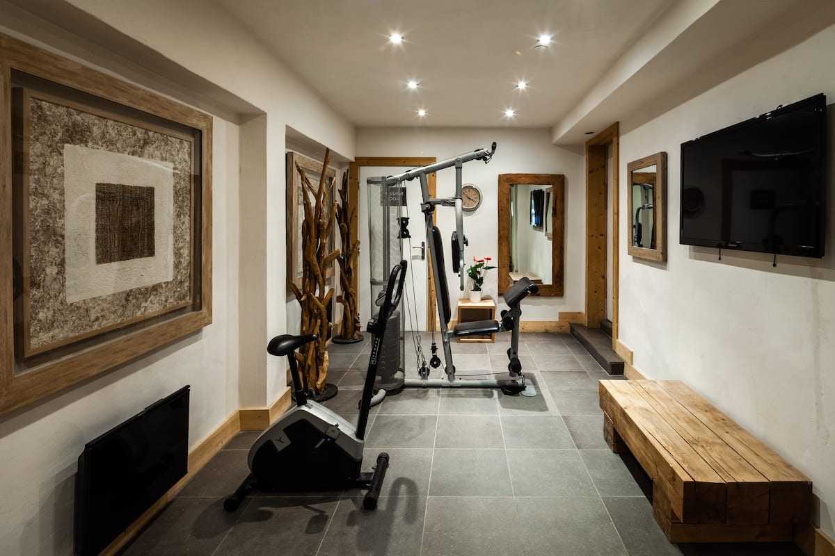 Les extérieurs offrent de larges terrasses panoramiques, une piscine chauffée (en été) et un environnement propice à la détente ou aux échanges. Côté bien-être, les invités bénéficient de 4 jacuzzis extérieurs privatifs, d’un sauna, d’un hammam, d’une salle de massage et d’un espace fitness.