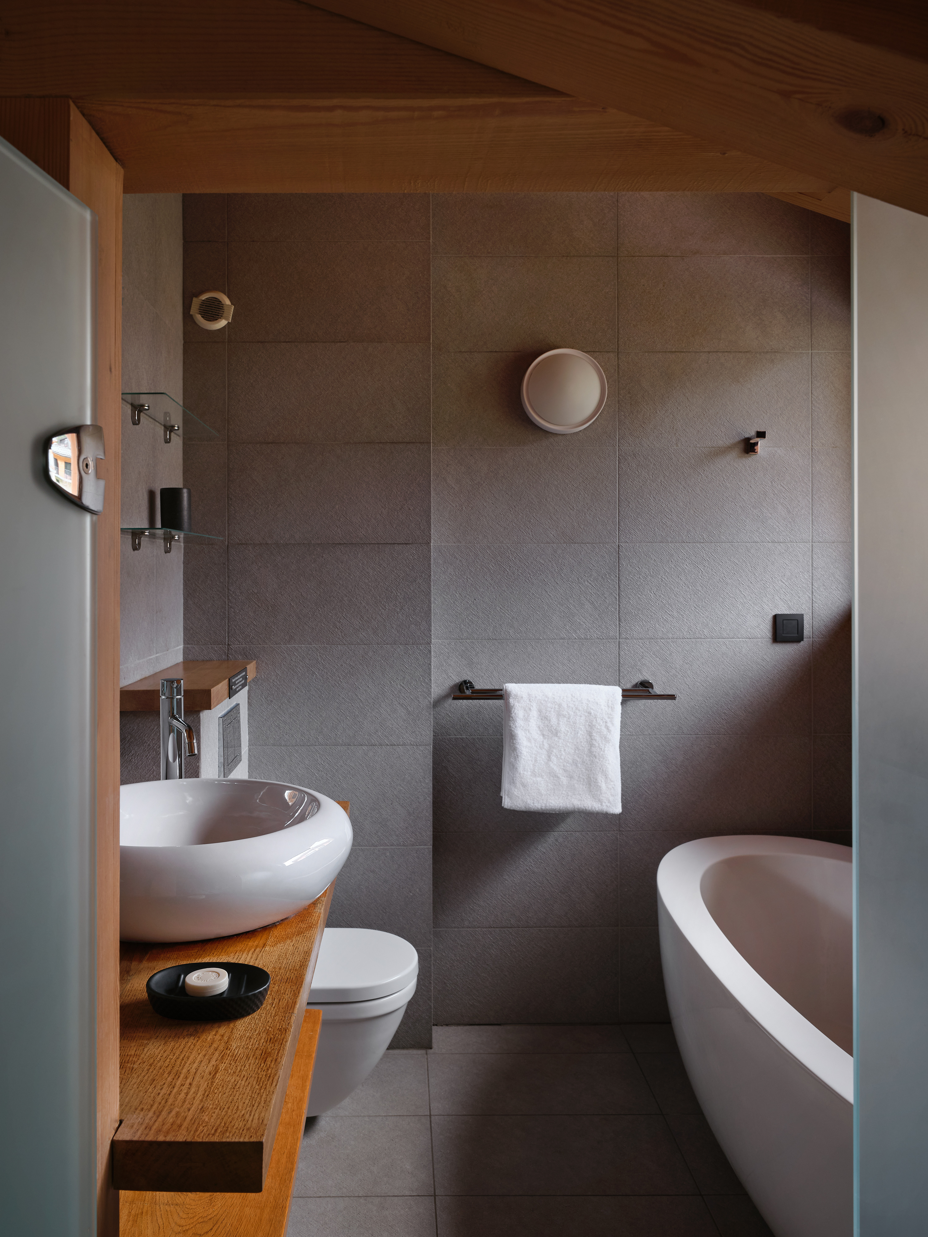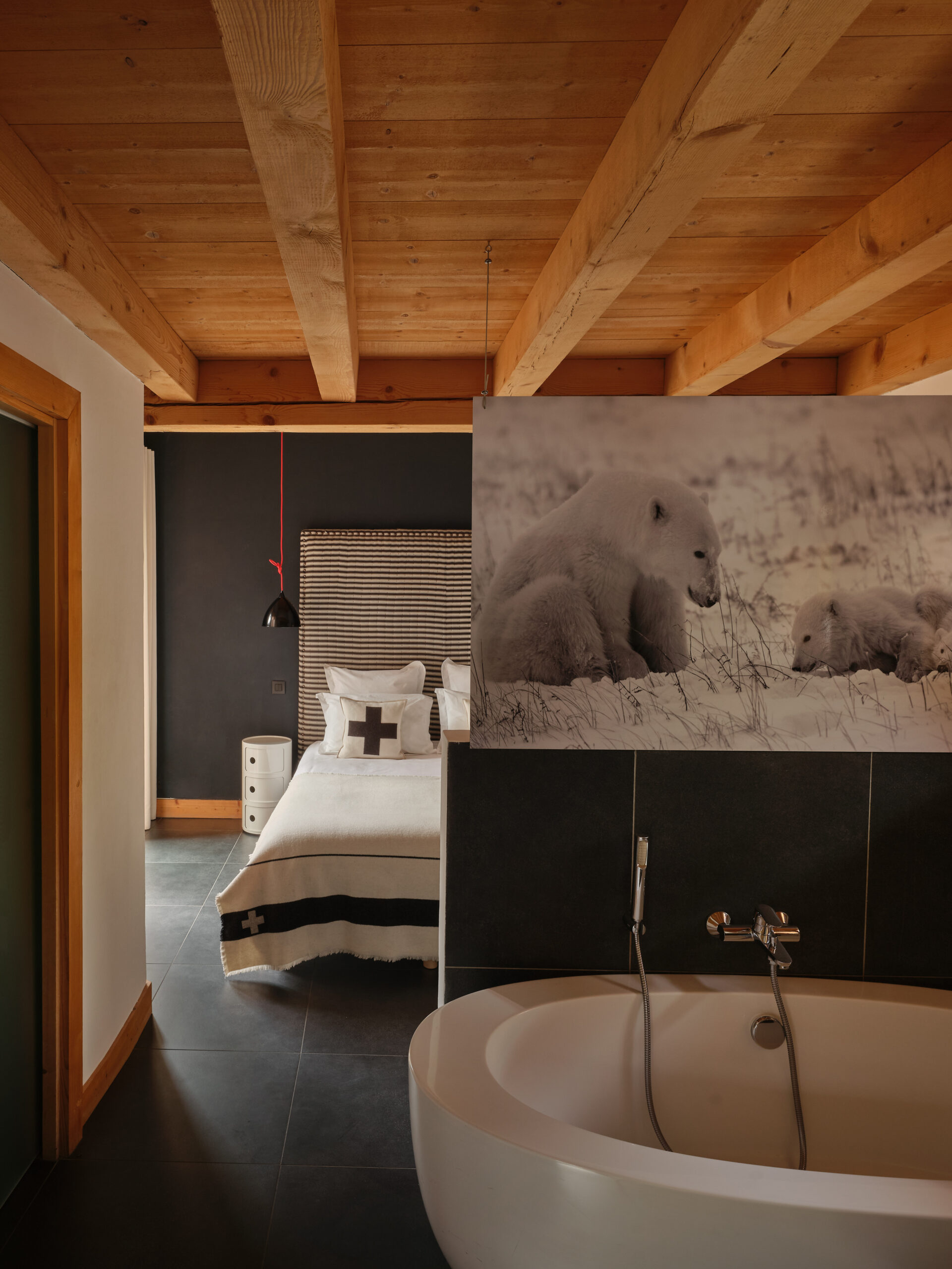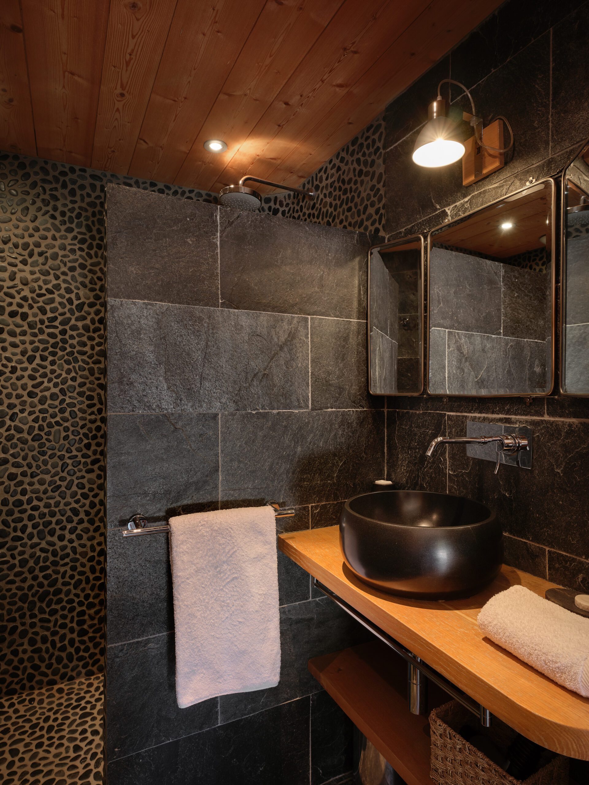 Les extérieurs offrent de larges terrasses panoramiques, une piscine chauffée (en été) et un environnement propice à la détente ou aux échanges. Côté bien-être, les invités bénéficient de 4 jacuzzis extérieurs privatifs, d’un sauna, d’un hammam, d’une salle de massage et d’un espace fitness.