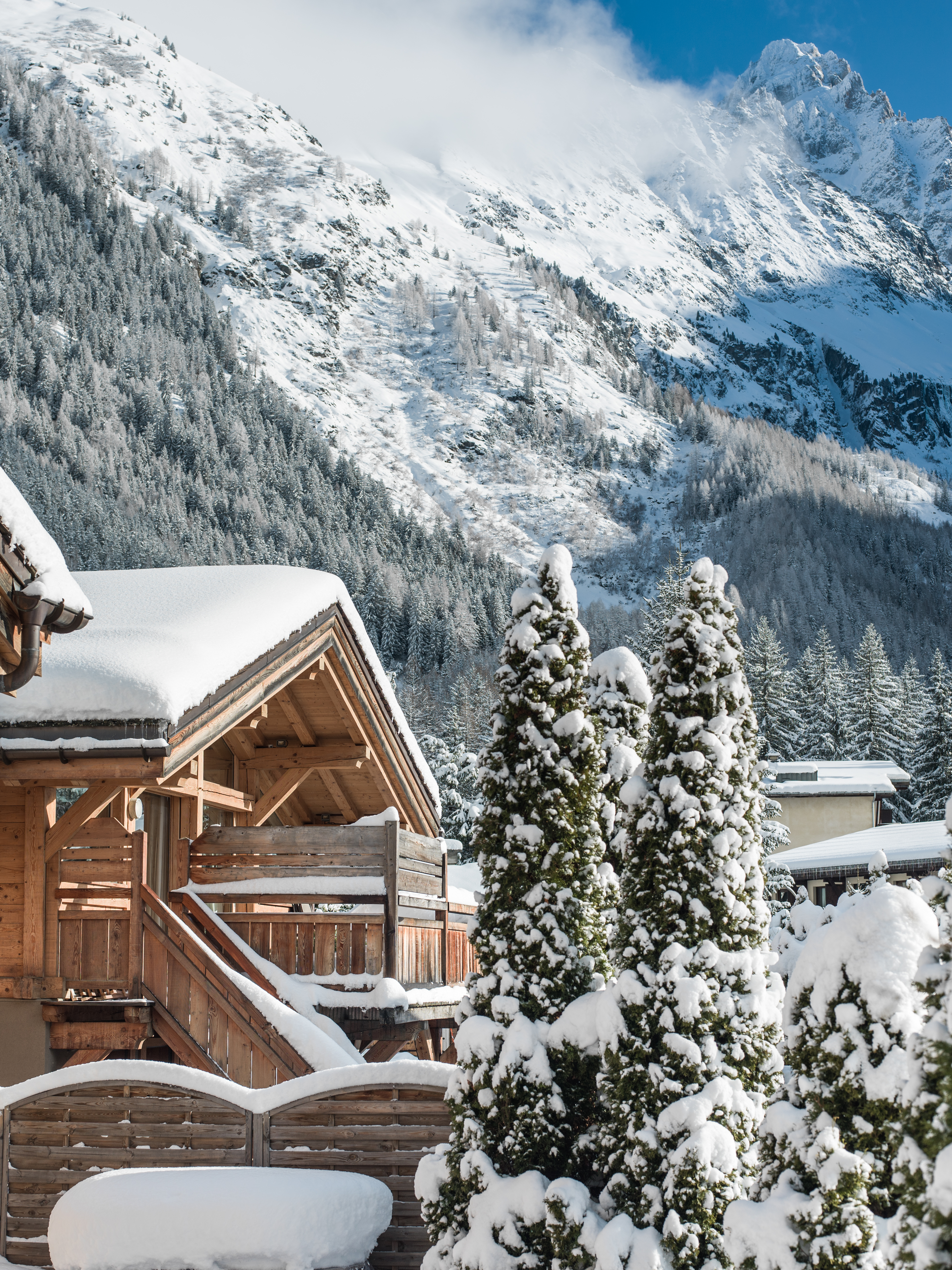 À quelques minutes des pistes et face au Mont-Blanc, ce hameau confidentiel rassemble quatre chalets haut de gamme, interconnectés, pour accueillir jusqu’à 50 personnes dans un cadre naturel spectaculaire.