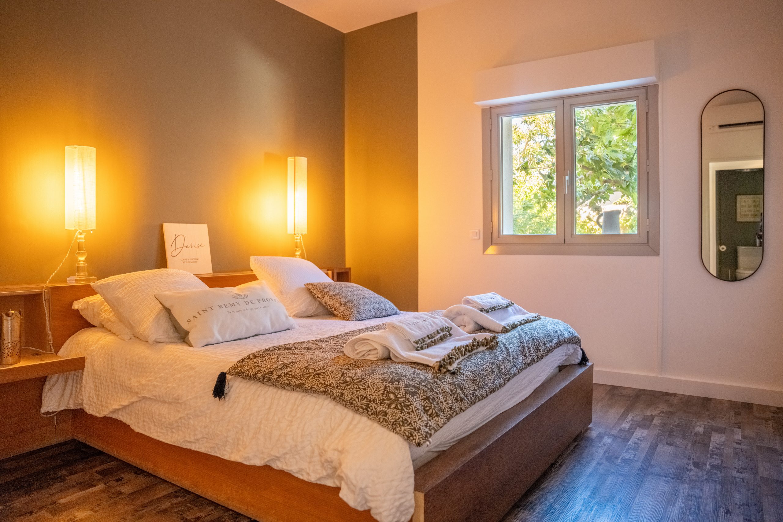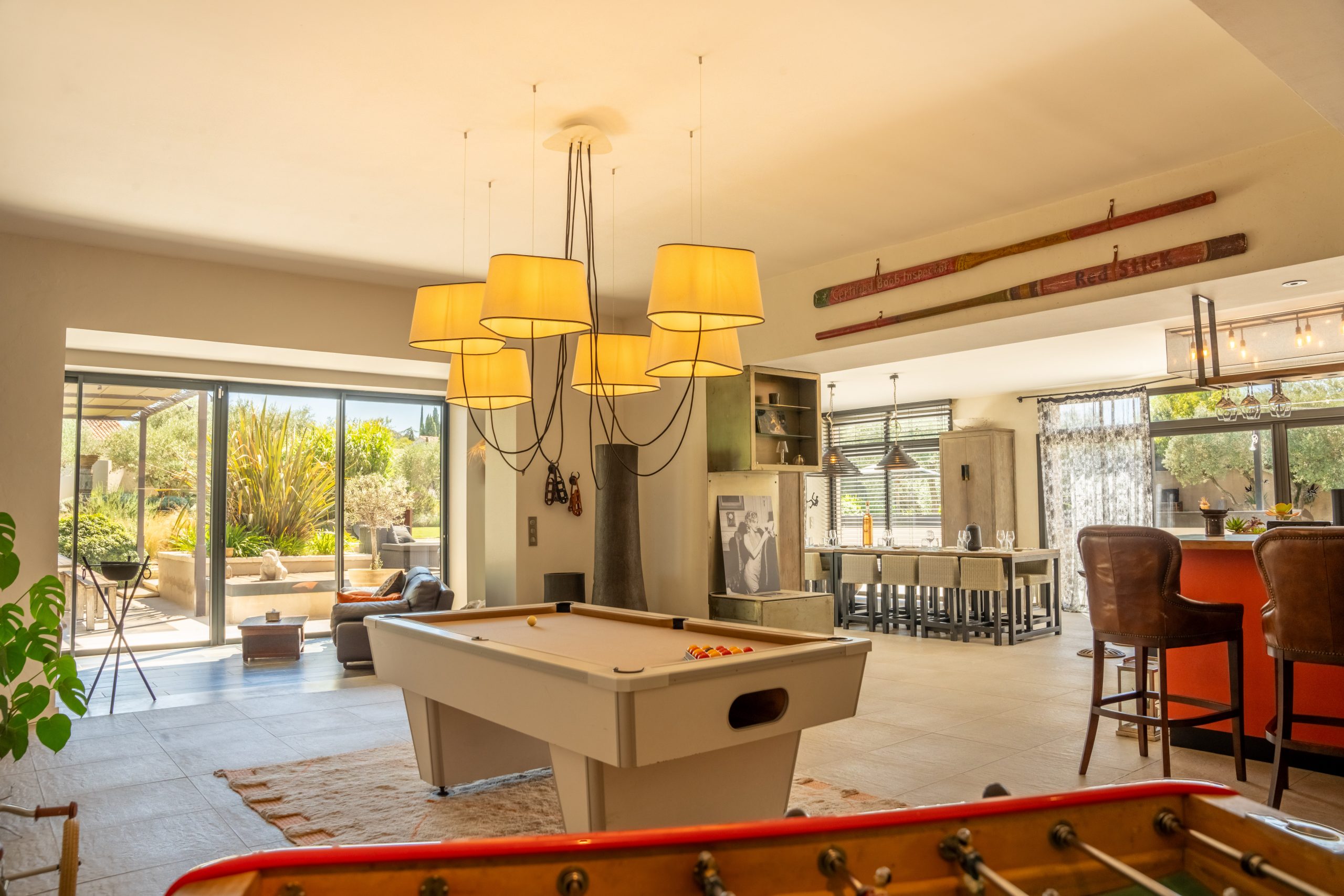 Les deux salons, la cuisine de 50 m² et les espaces détente (billard, babyfoot, brasero) favorisent les moments de partage, tandis que la localisation à 800 mètres du centre de Saint-Rémy-de-Provence assure confort et accessibilité.