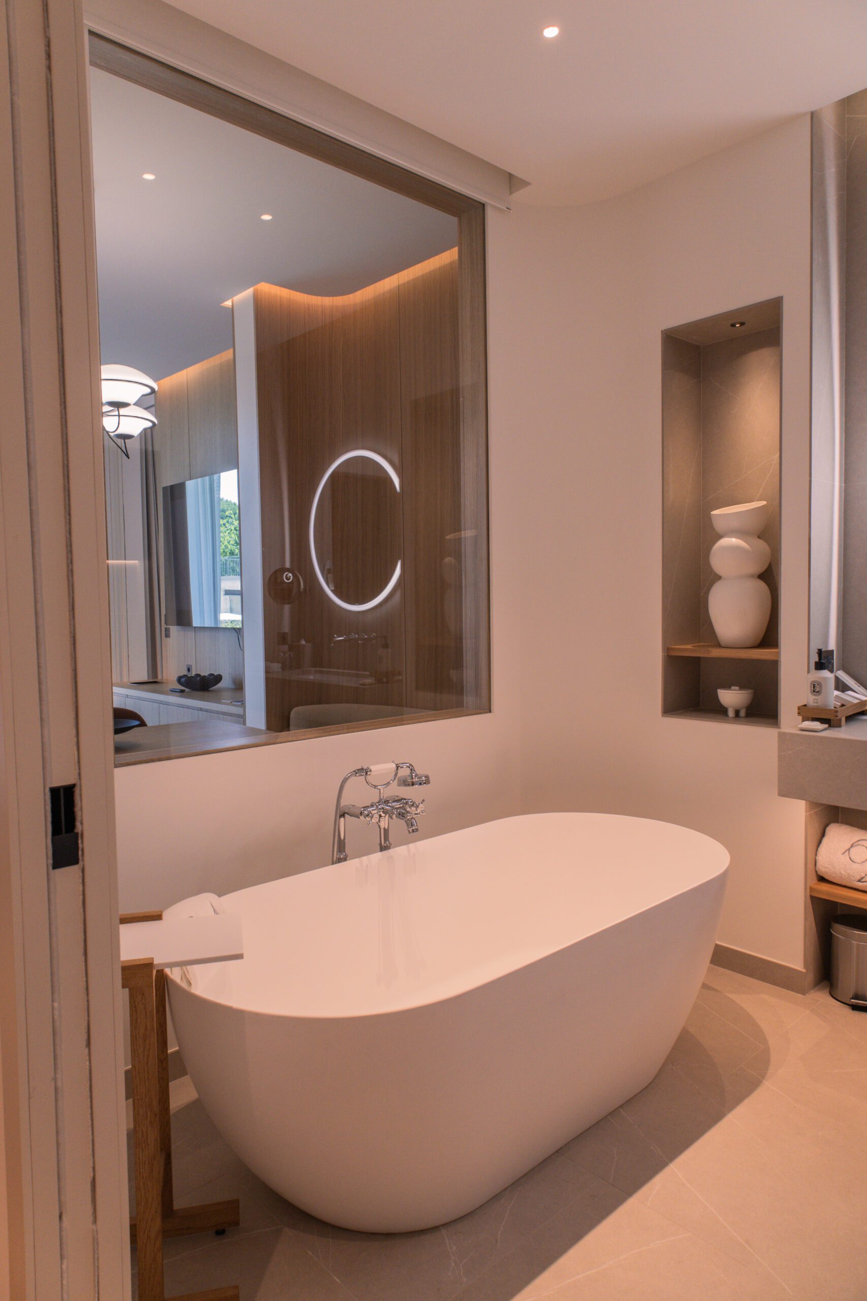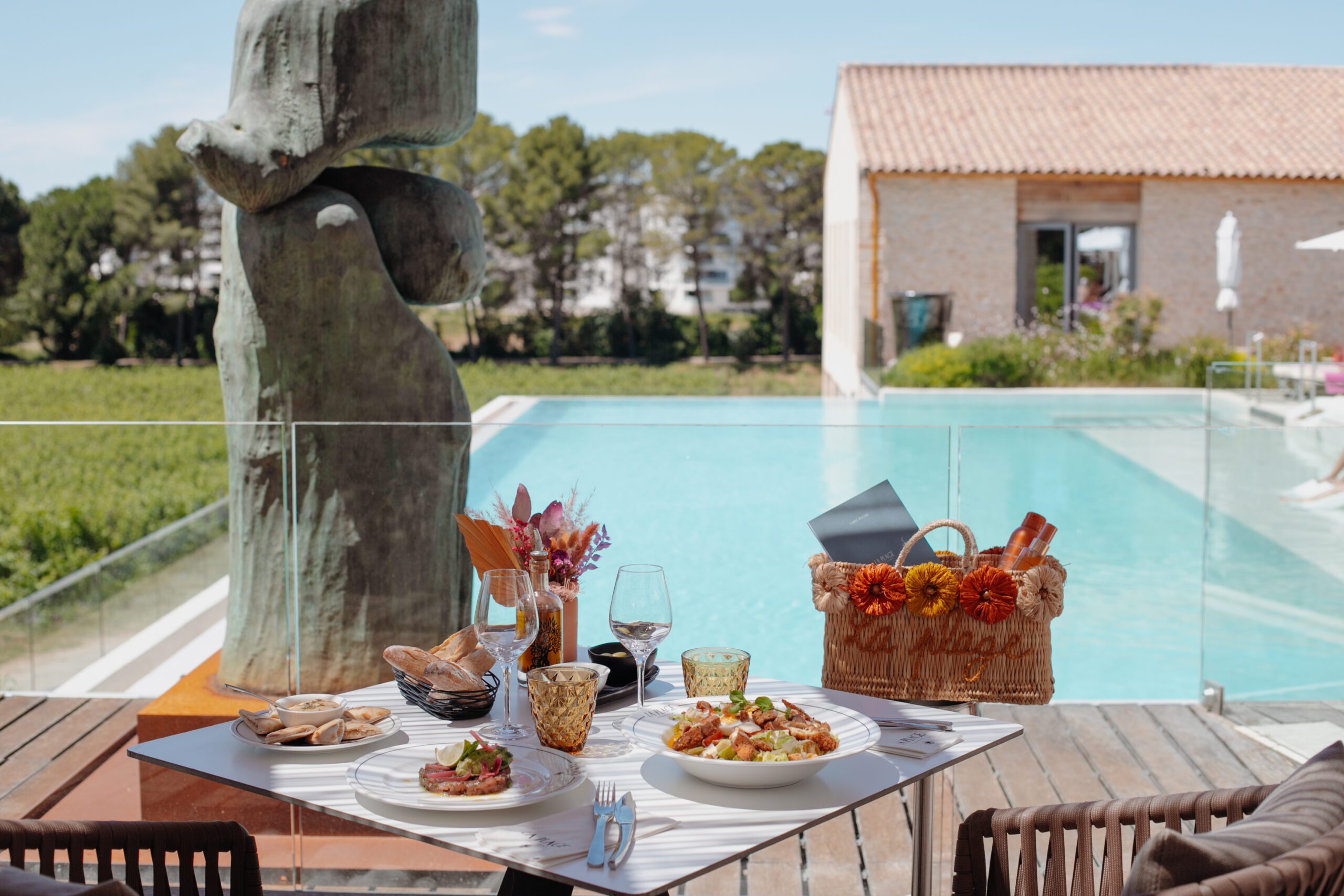 Sur place : hébergement 5*, spa, restaurants gastronomiques, bar à vin, piscines et activités oenotouristiques dans un cadre de nature et de raffinement.