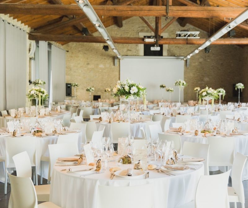 La Salle Prestige (280 m²) et sa terrasse panoramique de 200 m², la Salle du Grand Chai (180 m² modulable en trois sous-salles), ainsi que les restaurants et jardins du domaine, offrent des configurations variées pour des événements allant de 10 à 340 personnes.