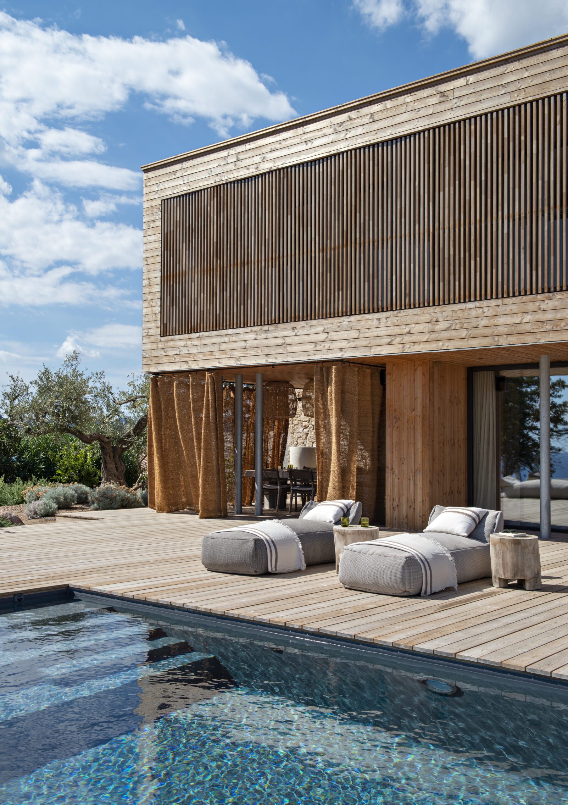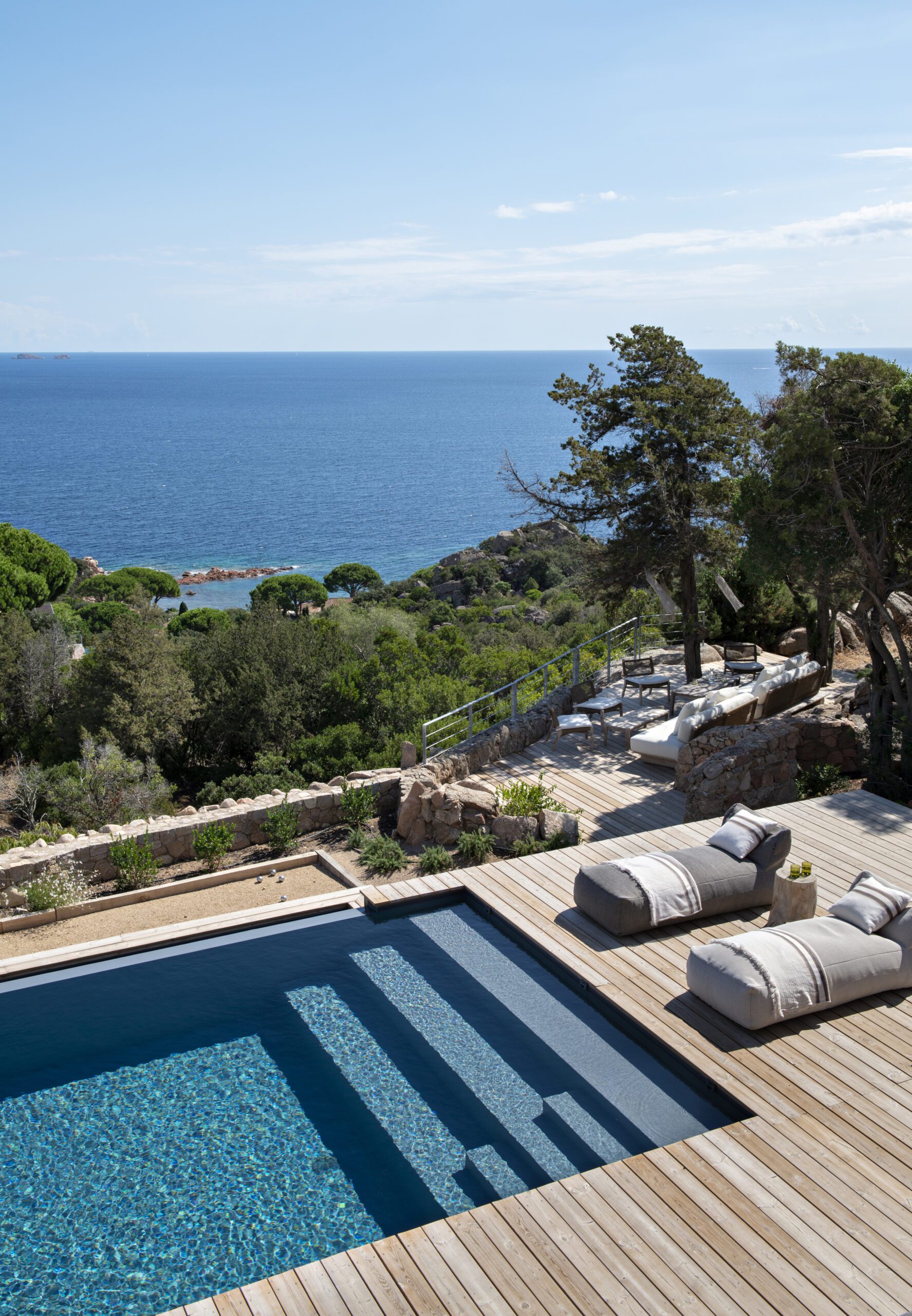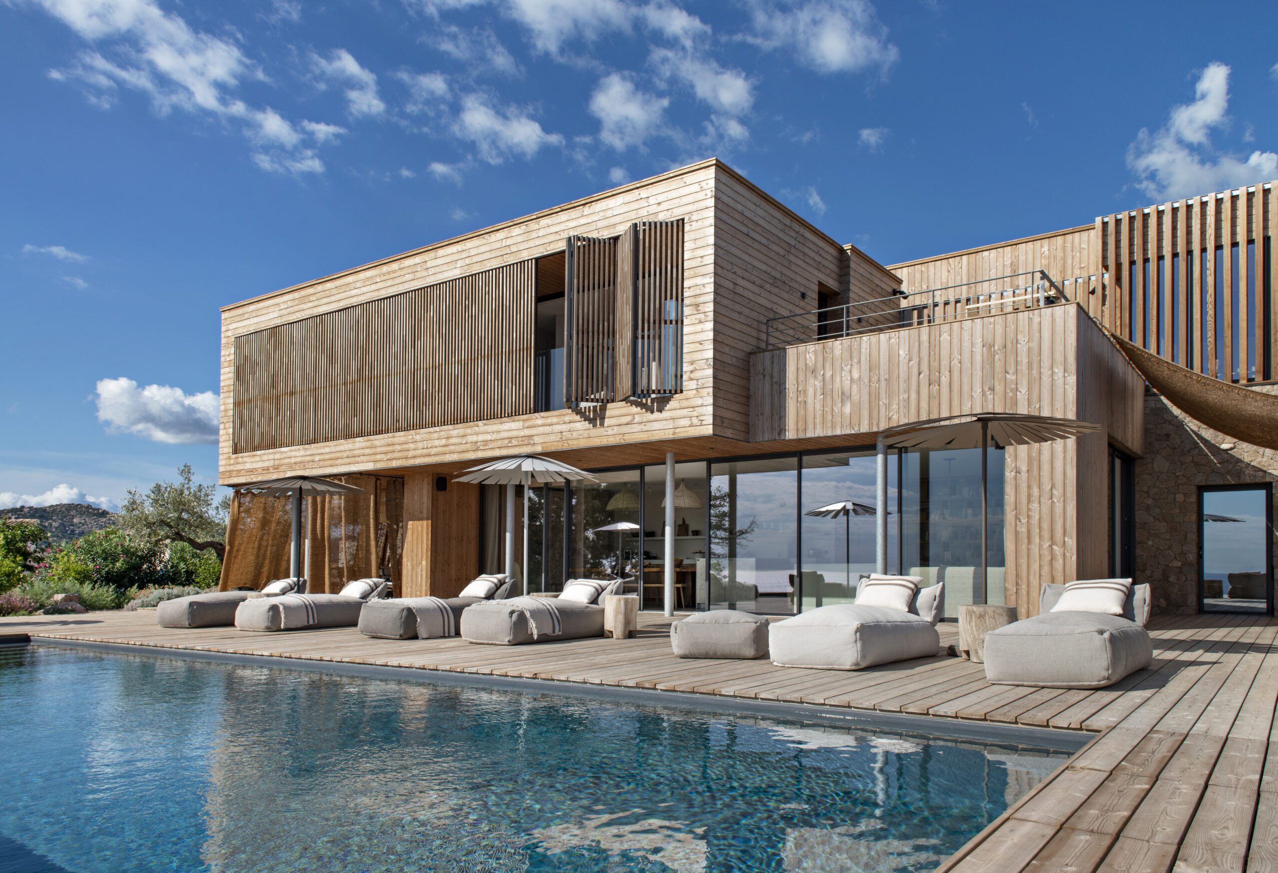 Face à la Méditerranée, cette villa contemporaine offre un refuge suspendu entre mer et maquis, où la lumière circule librement et où chaque détail respire la sérénité.