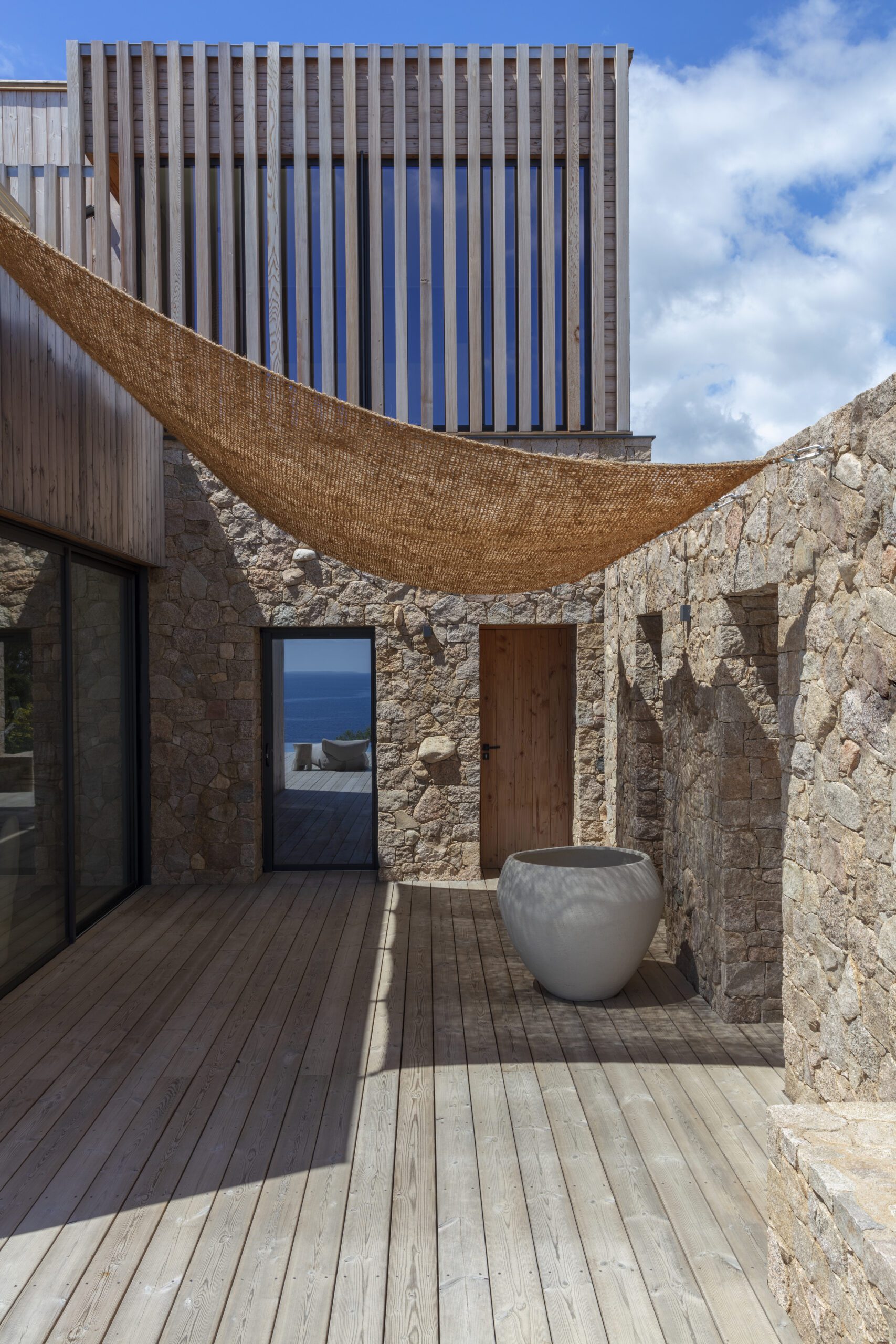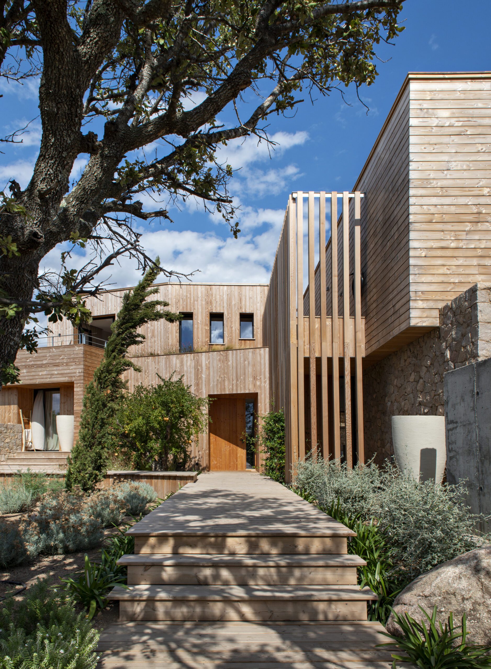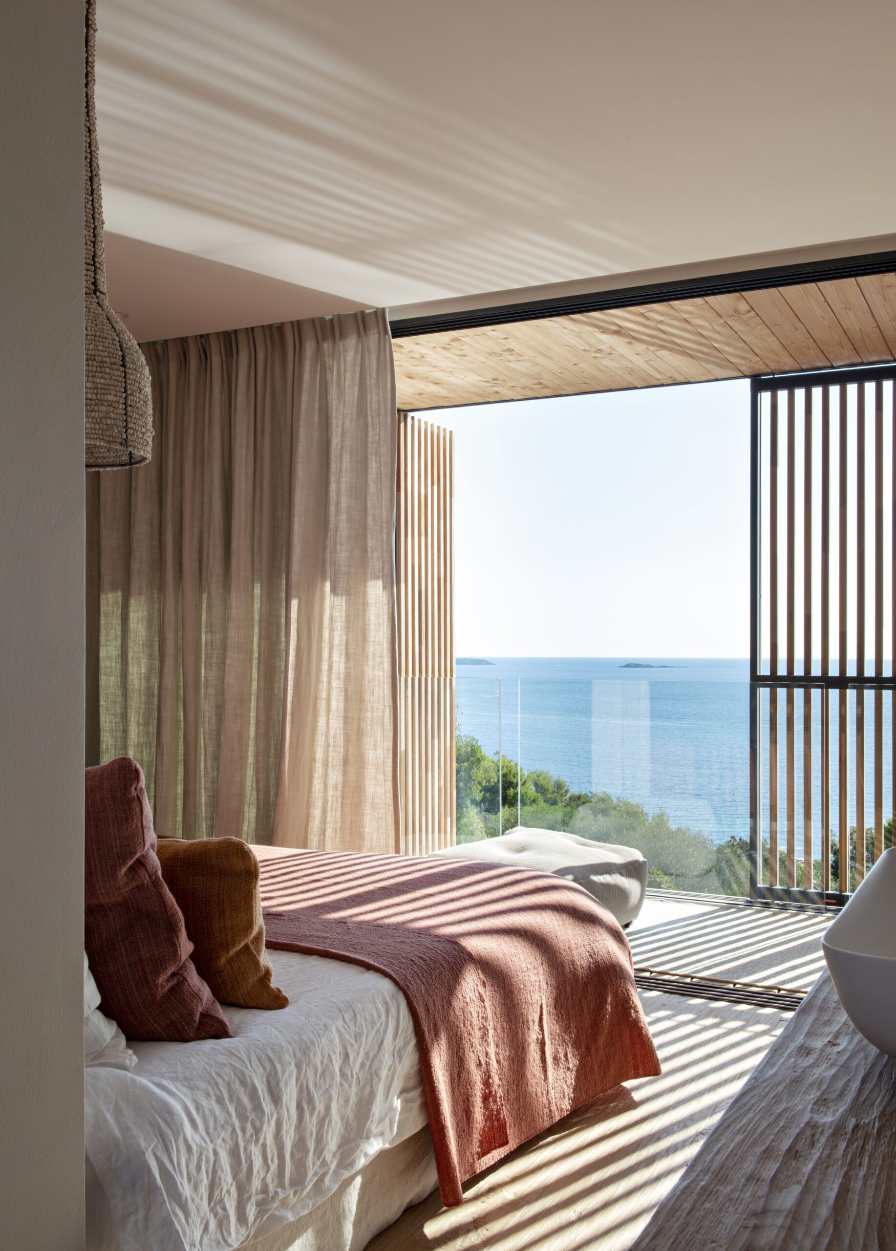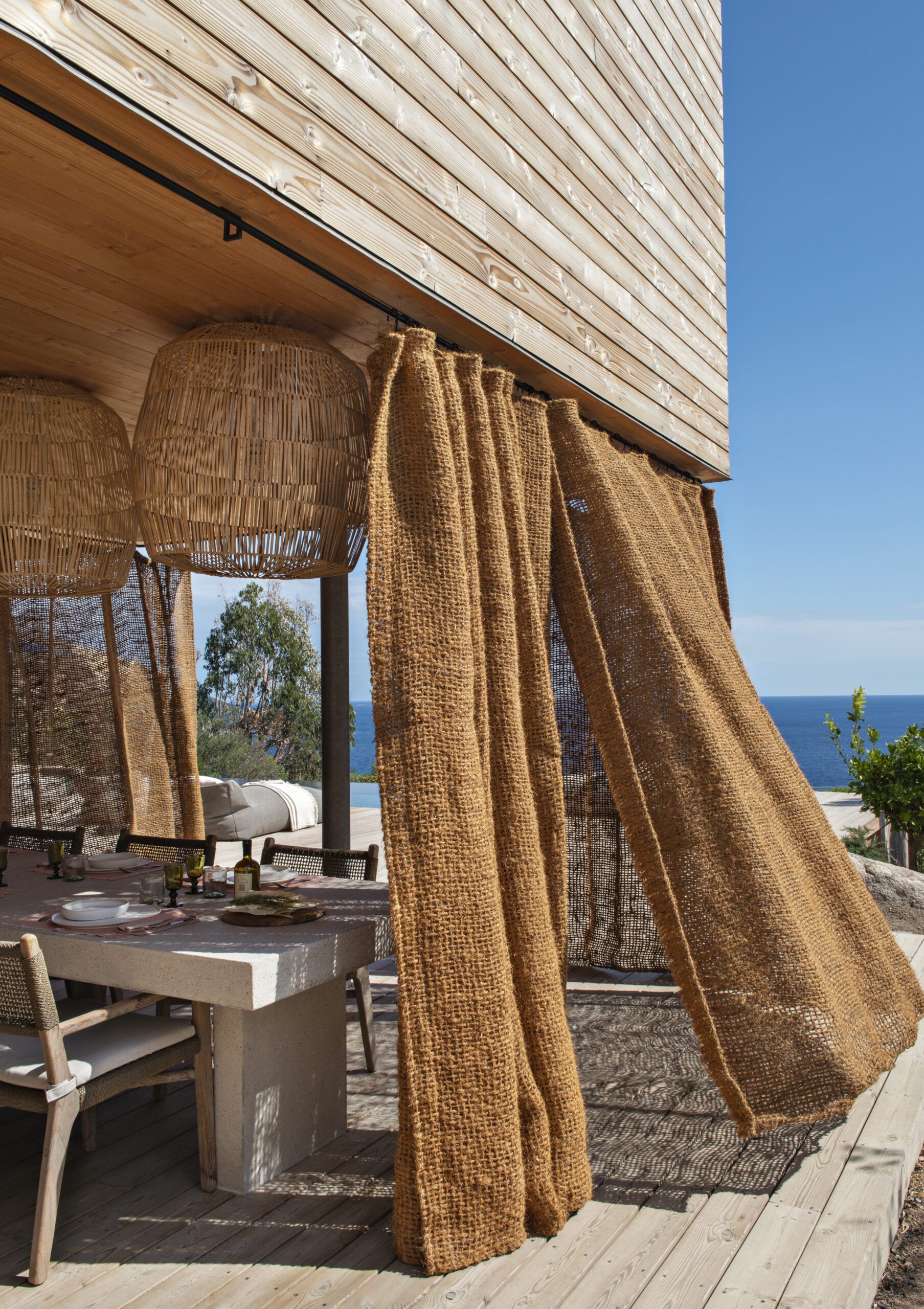 Face à la Méditerranée, cette villa contemporaine offre un refuge suspendu entre mer et maquis, où la lumière circule librement et où chaque détail respire la sérénité.