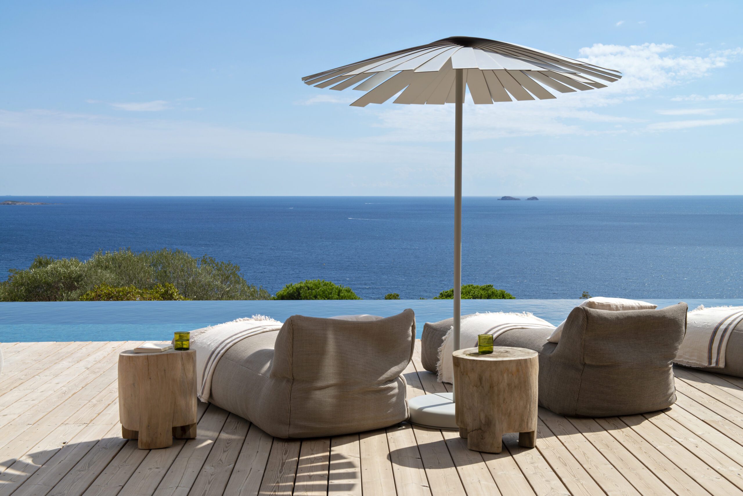 Ici, tout est pensé pour un art de vivre méditerranéen : un jardin naturel où le vent joue dans les pins, un accès direct à la plage, et des instants suspendus entre horizon et silence.