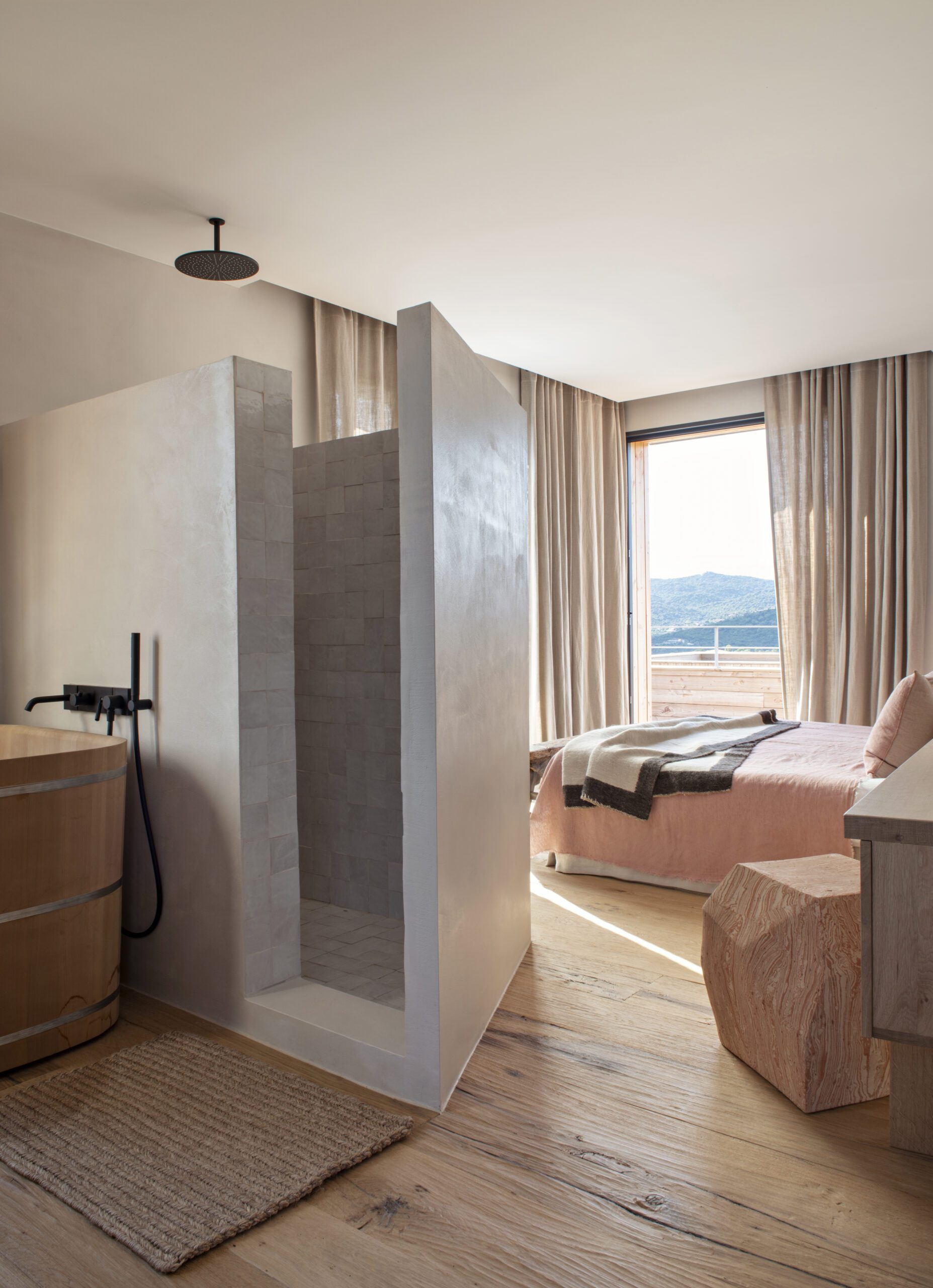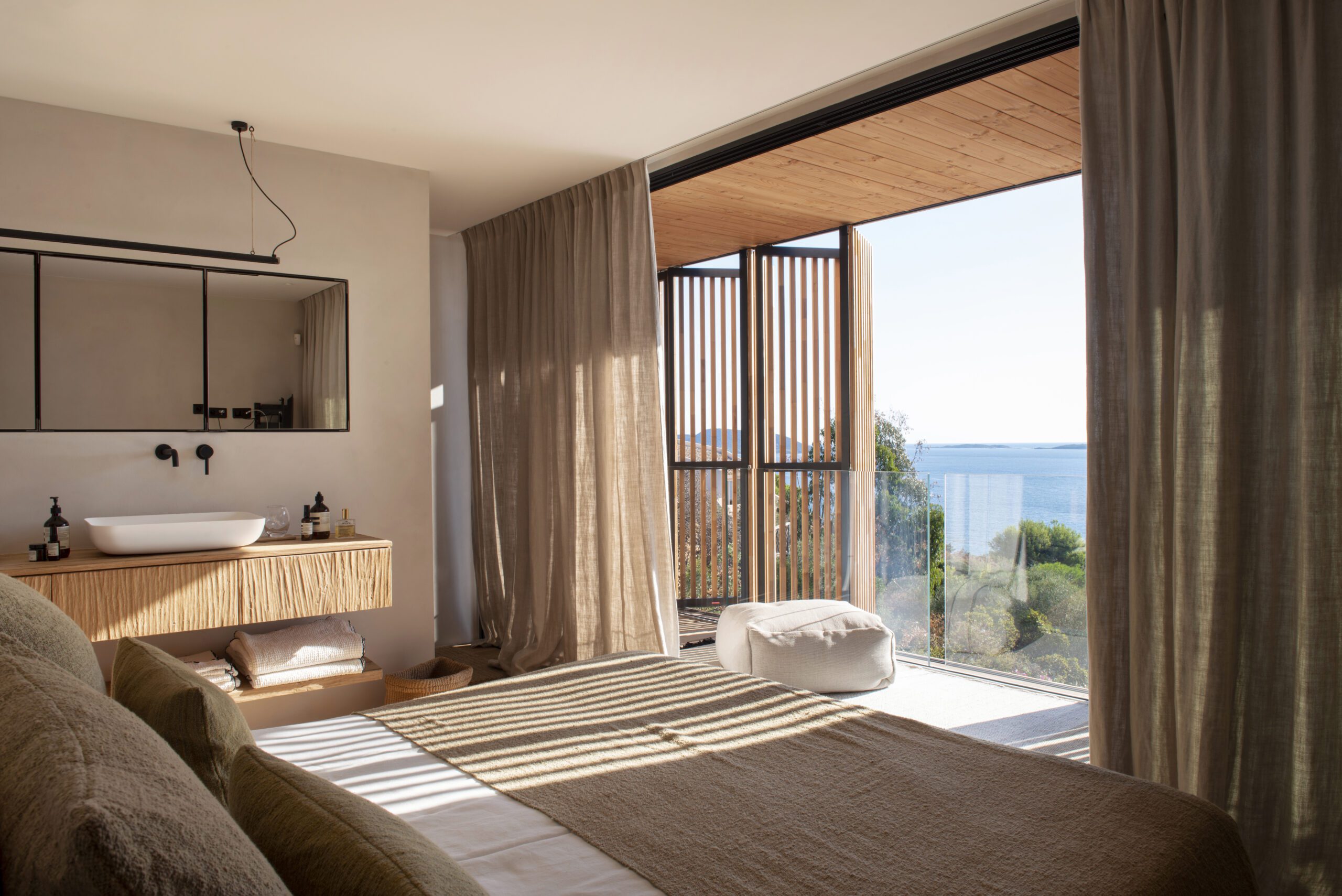 Les six chambres en suite disposent chacune de leur salle de bain privative, d’une terrasse et d’une vue sur la mer ou la végétation environnante. La literie haut de gamme, les dressings et la climatisation assurent à chacun un confort total et une intimité préservée.